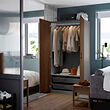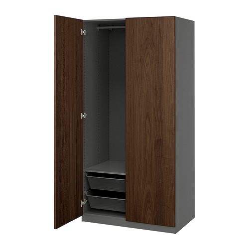 PAX / BJÖRNESKOGEN combinación de armario, gris oscuro / chapa de nogal