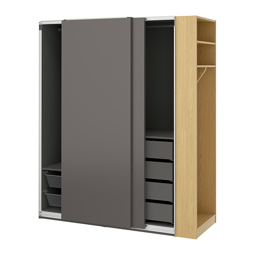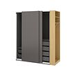 PAX / HASVIK armario+puertas corredizas, gris oscuro gris oscuro / efecto de roble