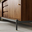 La serie RÅDMANSÖ está inspirada en el diseño de mediados del siglo XX, con líneas elegantes, una gran funcionalidad y un cálido tono nogal. Este mueble para TV ofrece un amplio espacio de almacenamiento, pomos de estilo latón e interior en azul intenso.