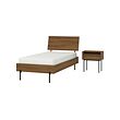 La base de cama RÅDMANSÖ tiene un estilo de madera con un tono nogal que le da un toque cálido al dormitorio.