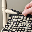 La cremallera es segura para los niños, porque hemos quitado el pasador. Para abrirla y cerrarla, inserta un clip en el ojo de la misma, pero recuerda quitarlo después.