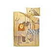 En la amplia sabana, la hierba domina el paisaje. Por un lado, este juego de funda nórdica de algodón suave y viscosilla tiene un motivo solo de hierba, mientras que por el otro se puede ver a los animales de la sabana asomándose con curiosidad.