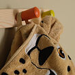Una toalla de rizo con capucha para los más pequeños. Está hecha de 100% algodón, un material suave y natural muy agradable al tacto.