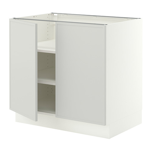 SEKTION gabinete bajo+estantes / 2 puertas, blanco / Aspudden gris claro