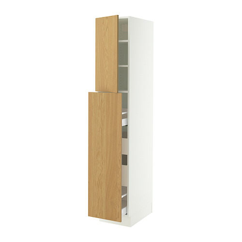 SEKTION / MAXIMERA gabinete alto+1 pt / 4 cjn extraíbles, blanco / Sinarp chapa de roble