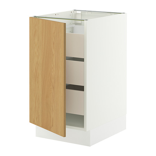 SEKTION / MAXIMERA gabinete bajo+1 puerta / 3 cajones, blanco / Sinarp chapa de roble