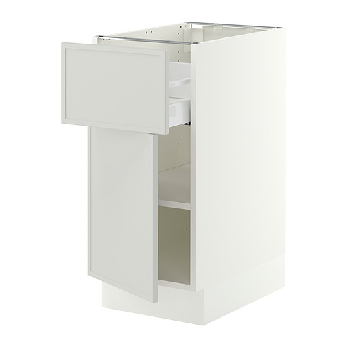 SEKTION / MAXIMERA gabinete bajo+cajón / puerta, blanco / Aspudden gris claro