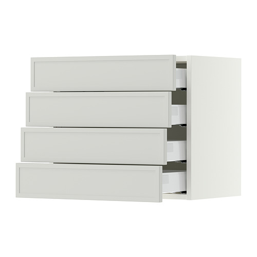 SEKTION / MAXIMERA gabinete de pared+4 cajones, blanco / Aspudden gris claro