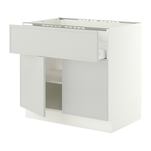 SEKTION / MAXIMERA gbn bajo estufa / cajón / estantes / 2prt, blanco / Aspudden gris claro