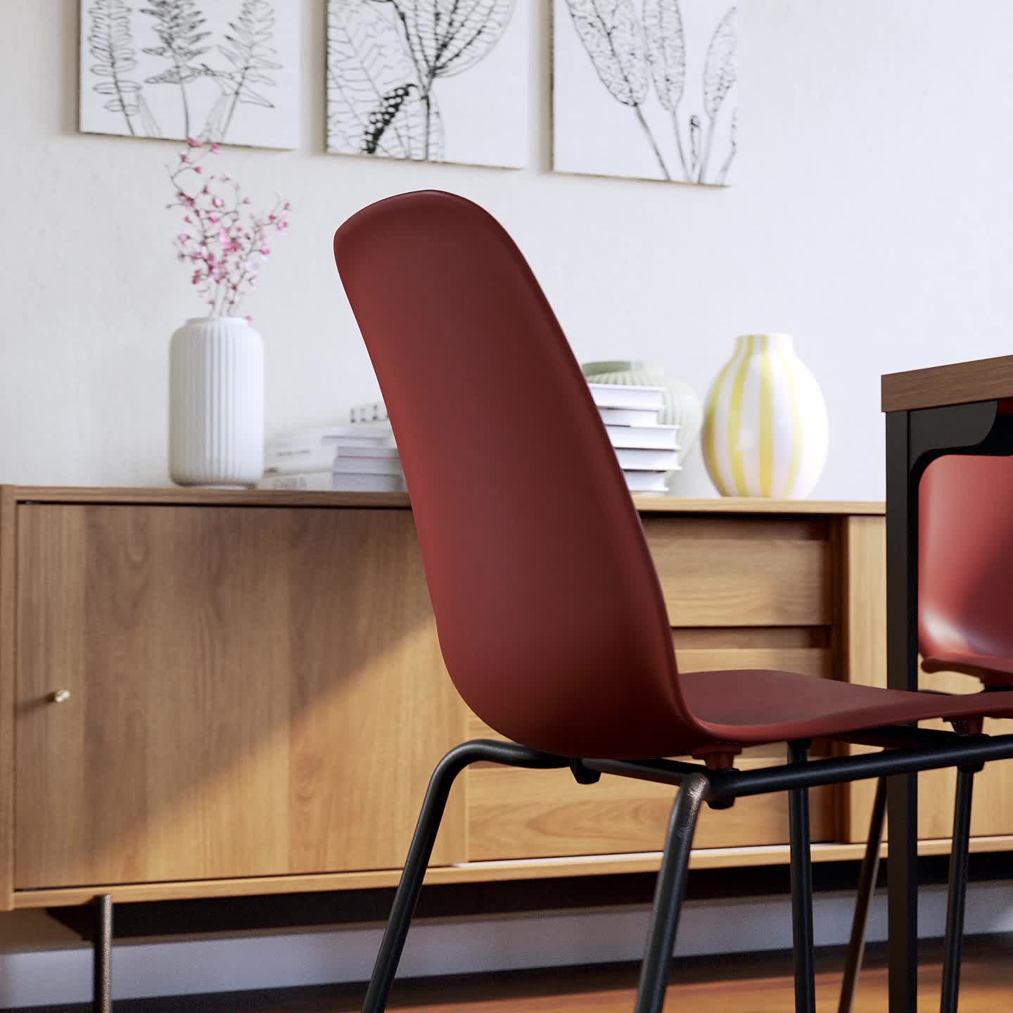 La silla queda muy bonita con la amplia selección de mesas de diversos acabados y colores de la serie SKÅLSTA.