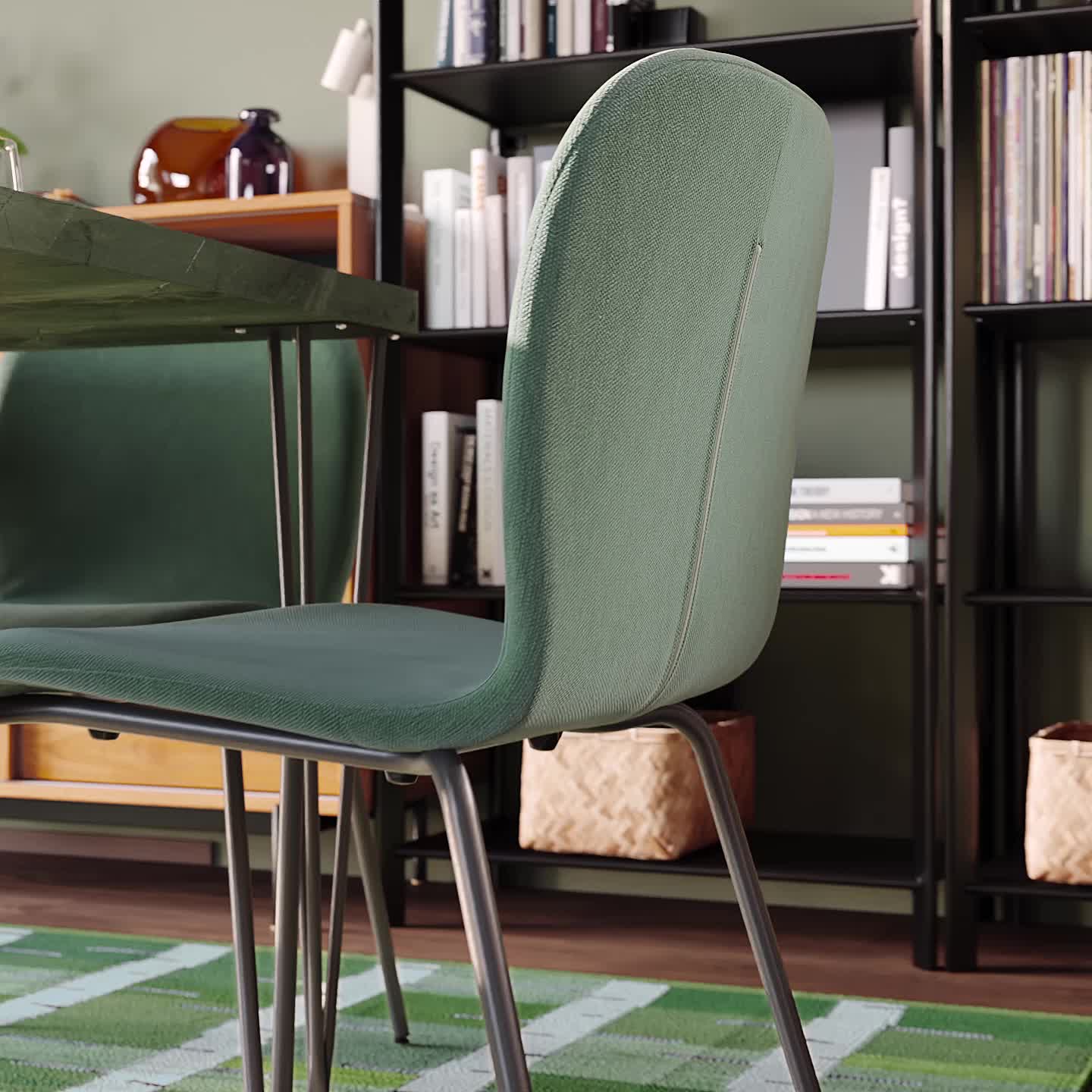 La silla queda muy bonita con la amplia selección de mesas de diversos acabados y colores de la serie SKÅLSTA.