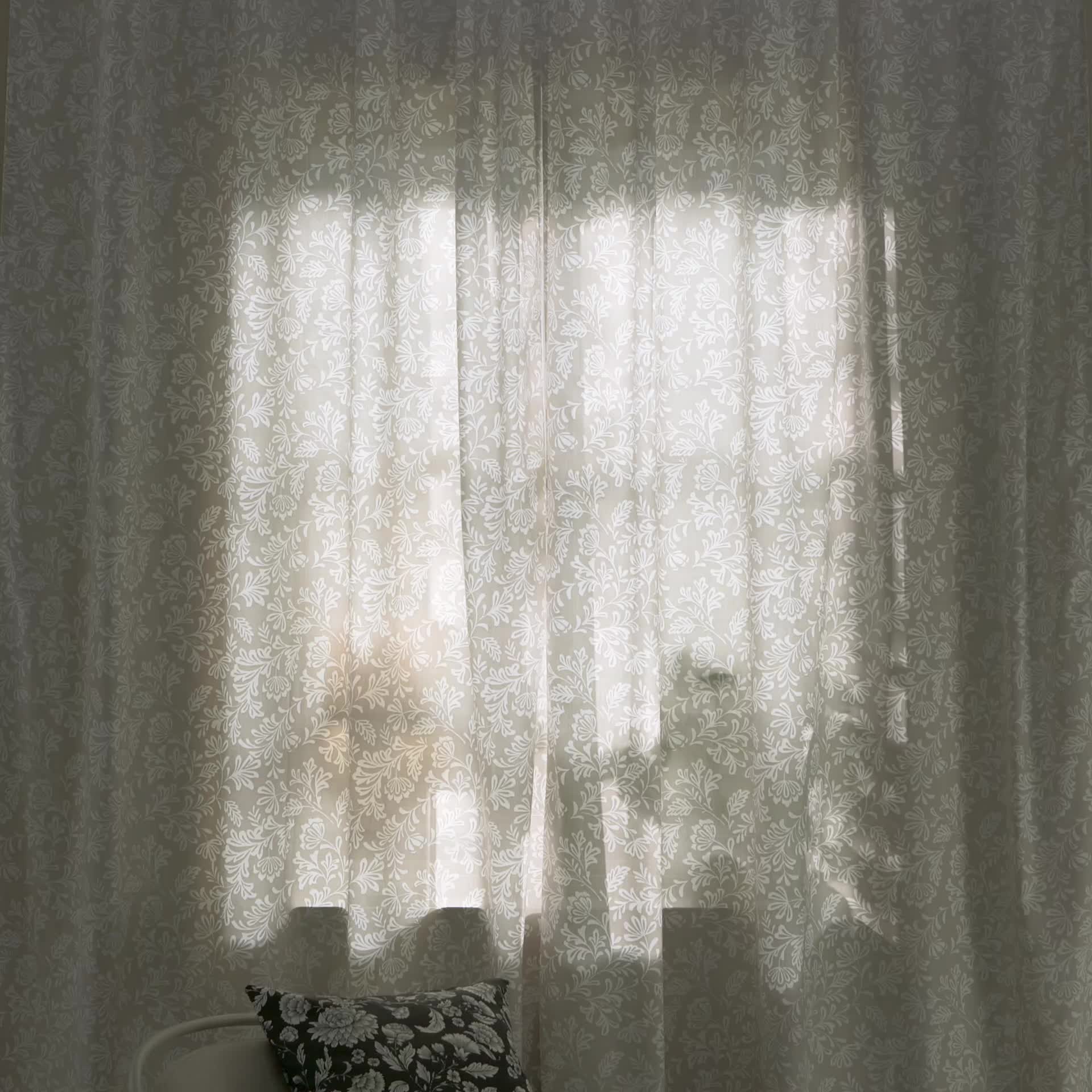 Las cortinas SNÖRUTA, con flores blancas sobre un fondo beige, se integran fácilmente en casi cualquier espacio. La tela filtra la luz y aporta privacidad, tanto de día como de noche. El cabezal multidireccional se puede usar con barras o rieles.
