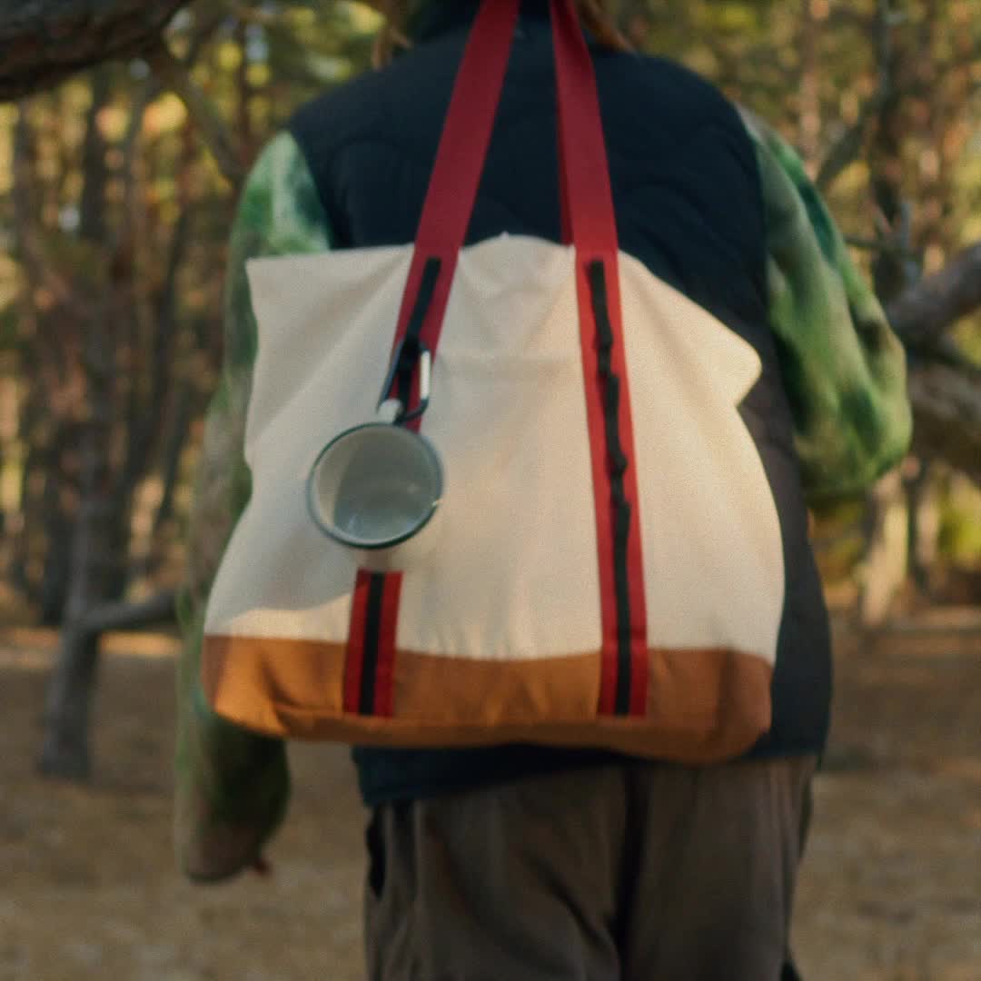 Una bolsa espaciosa hecha de poliéster duradero y resistente. Ideal para tus aventuras cotidianas, ya sea ir a la playa, de compras o de picnic al parque.