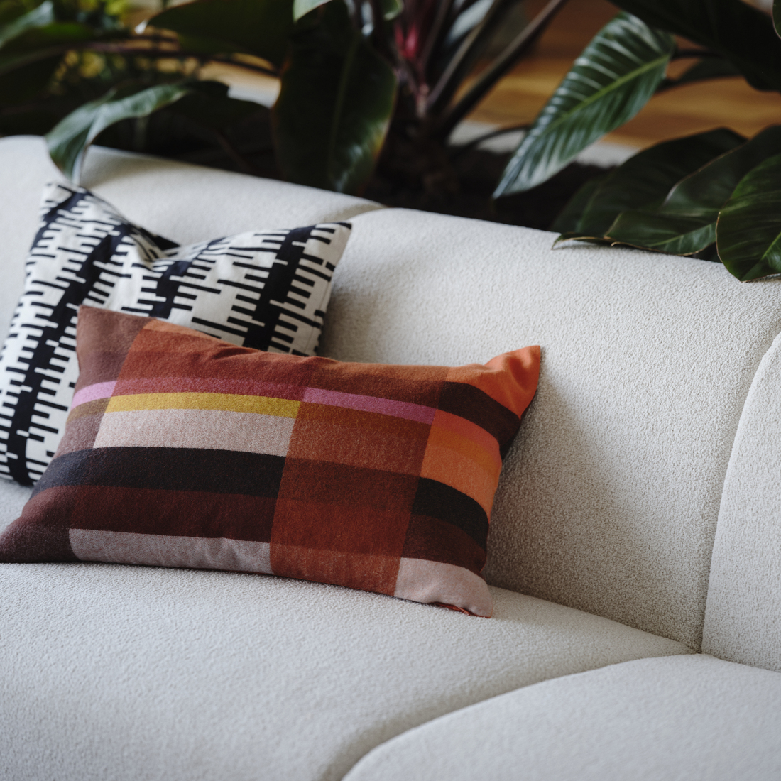 funda para cojín, marrón rojizo / rosado vivo, 16x23 "