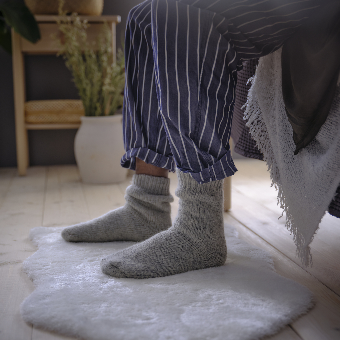 Con su superficie suave, cálida y agradable, puedes usarla como alfombra, para decorar un sillón o para darle un toque especial a un banco. Tiene el aspecto y el tacto de la piel de oveja, pero está hecha de botellas de PET recicladas.