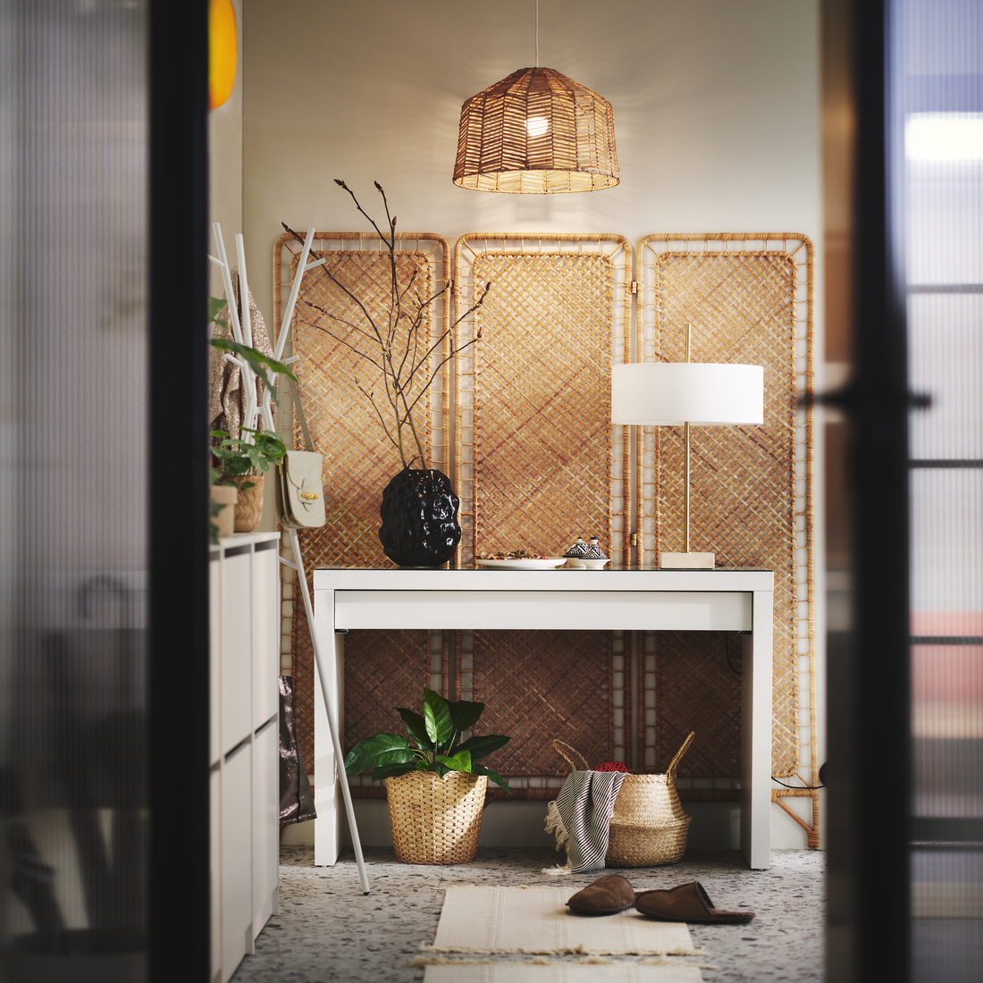 TOLKNING mampara, hecho a mano ratán, 59 "x67 "