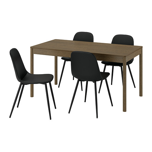 TONSTAD / NORDMANSSKÄR mesa con 4 sillas, chapa de roble teñida en marrón / Bomstad negro negro