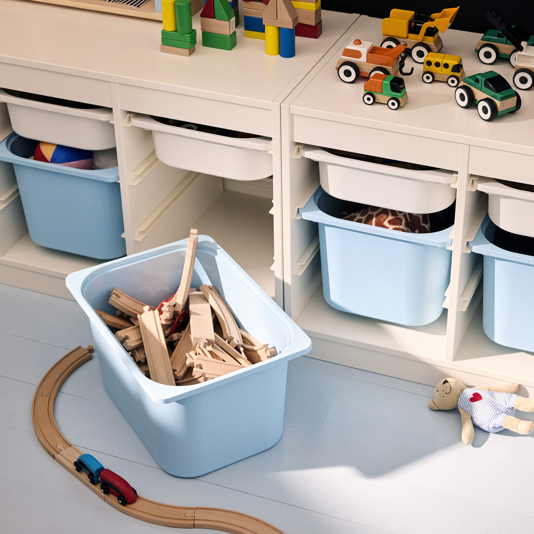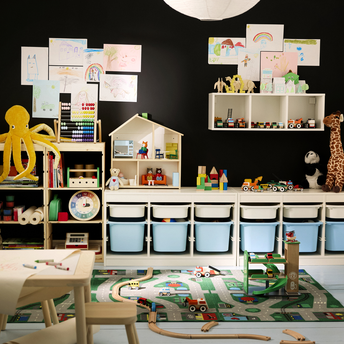 Una serie de almacenaje resistente y divertida para guardar y organizar los juguetes, sentarse, jugar y relajarse.