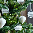 La colección VINTERFINT ofrece adornos para el árbol de Navidad adaptados a distintos gustos. Este cuarteto de vidrio con rayas blancas aporta elegancia a tu árbol.