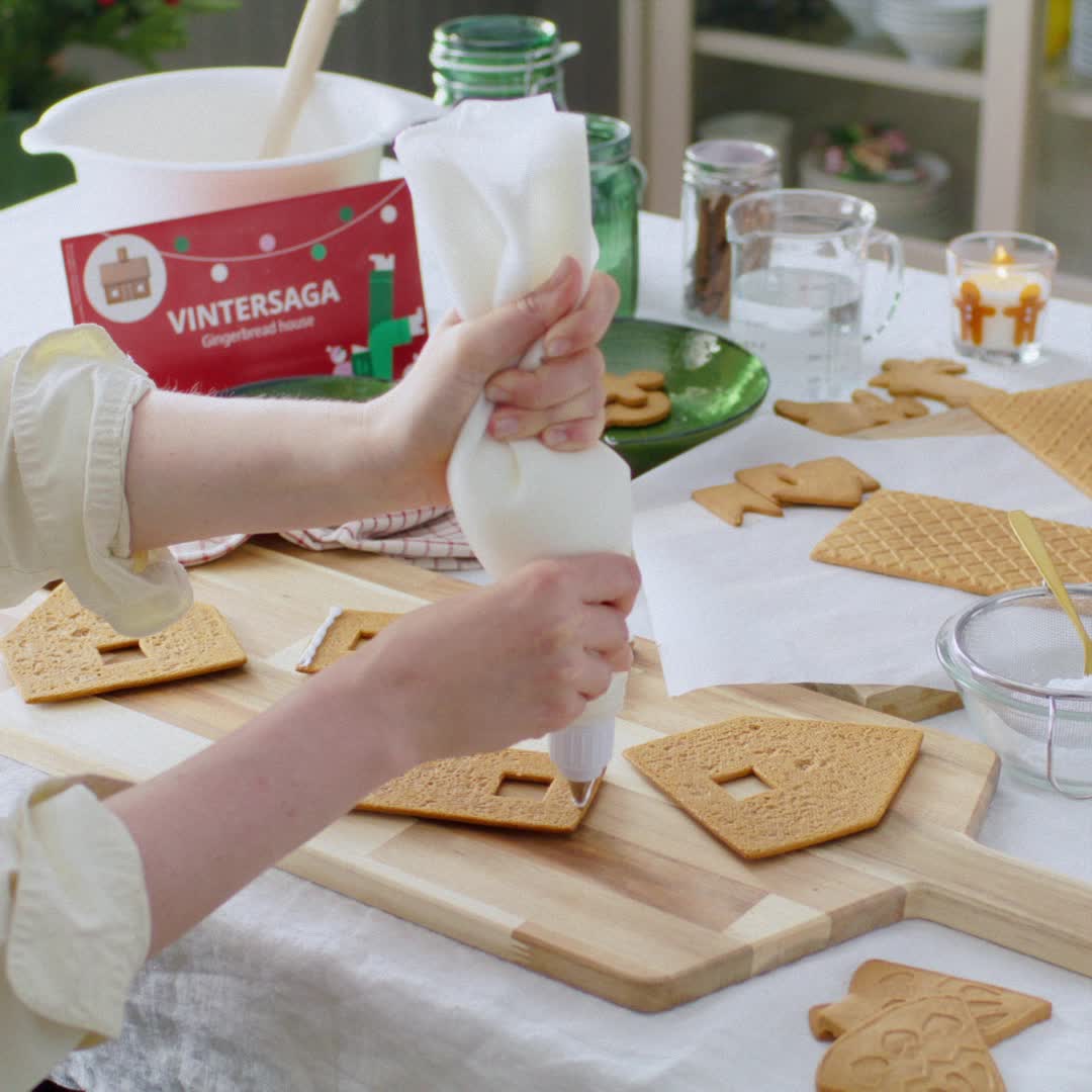 Desata tu imaginación y decora la casita de pan de jengibre VINTERSAGA a tu manera con glaseado, golosinas de colores o cualquier otra cosa que se te ocurra.