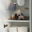 Se puede colocar en los estantes dentro de los gabinetes altos HAVBÄCK, ÄNGSJÖN o TÄNNFORSEN. También combina fácilmente con diversos muebles y estilos en otras áreas de tu hogar.